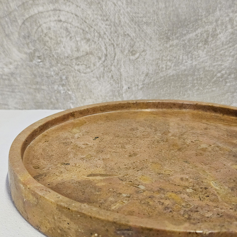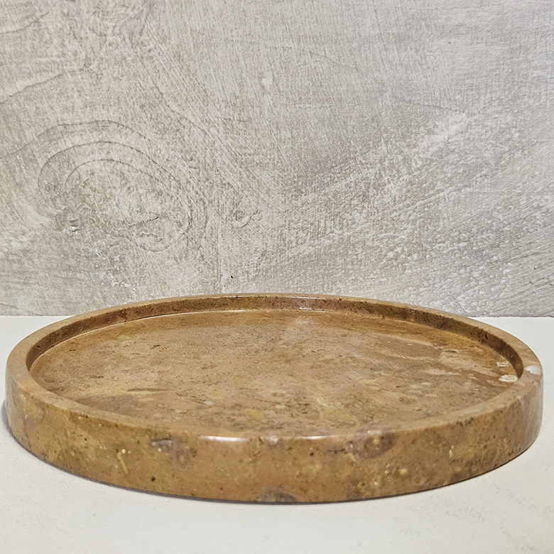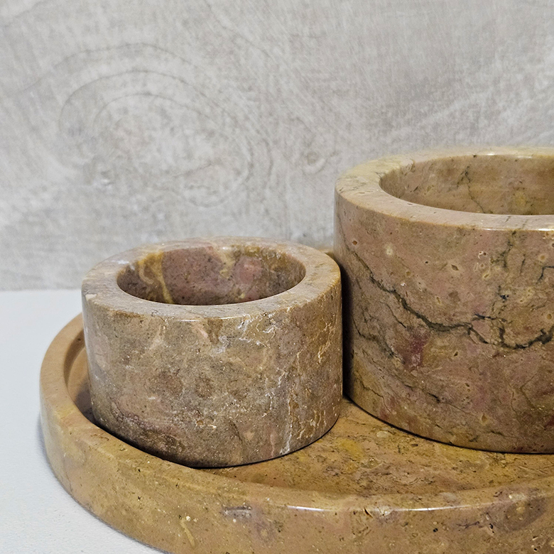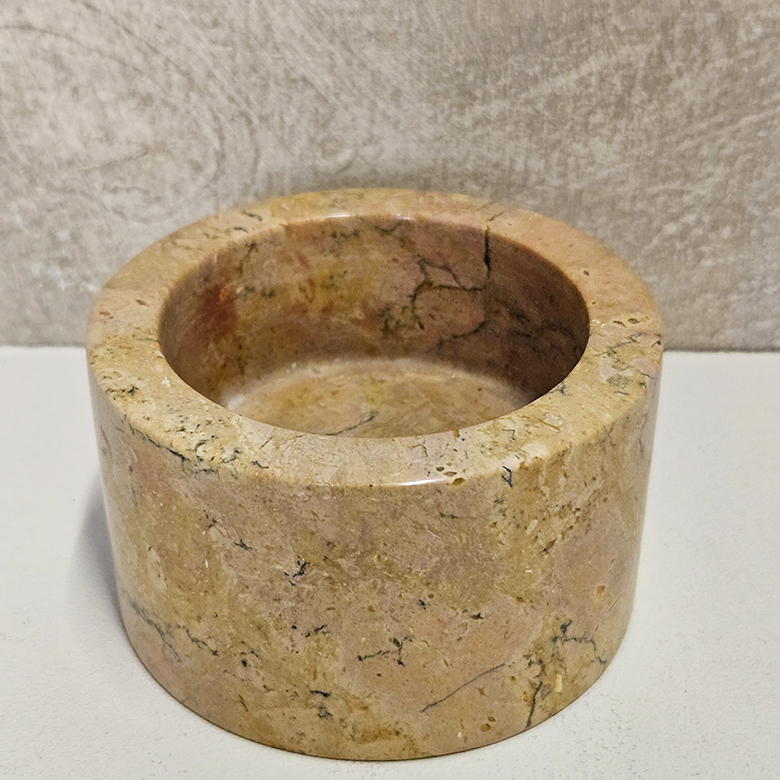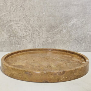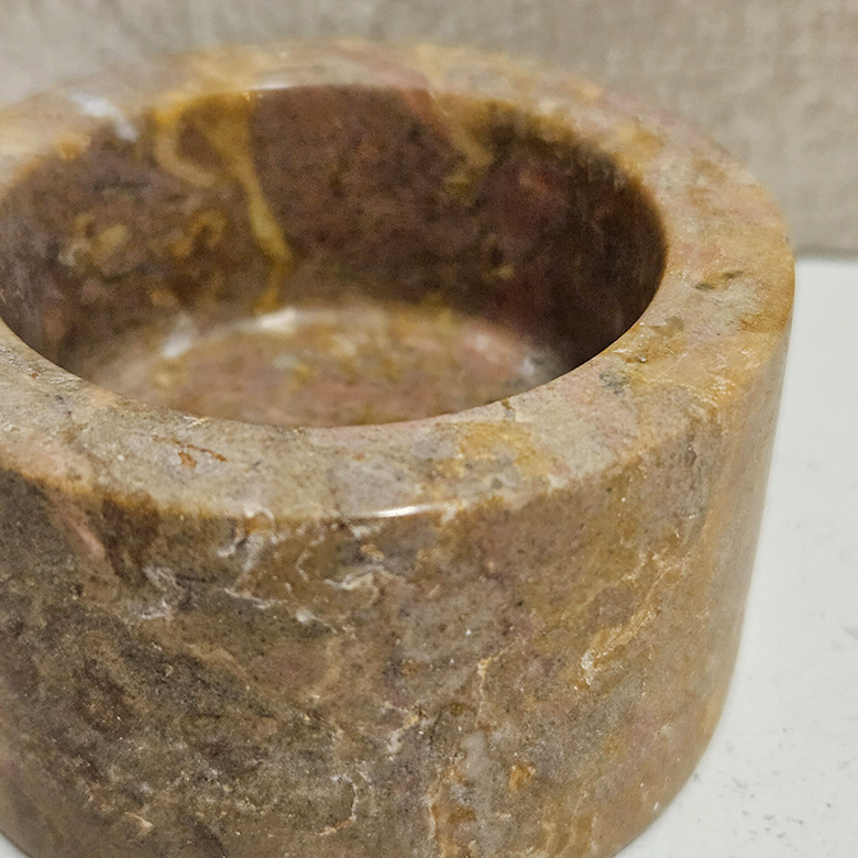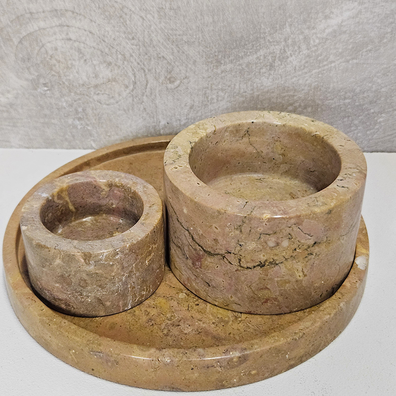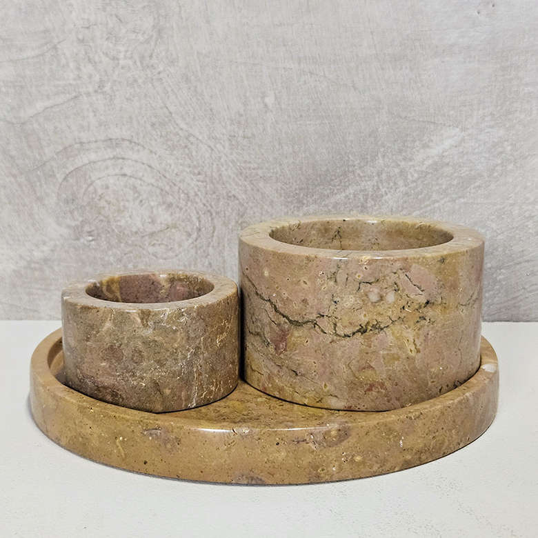 Rond schaaltje met 2 waxinelichtjes bruin.