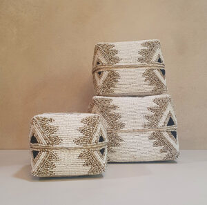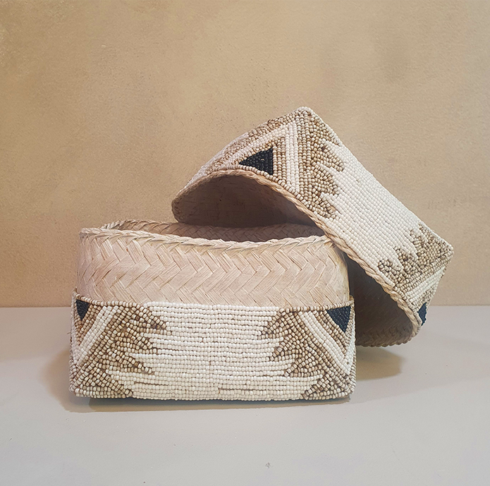 Waanzinnig mooie handgemaakte offermandjes in traditionele Balinese stijl. Gemaakt van gevlochten bamboe, versierd met kraaltjes. Set van 3