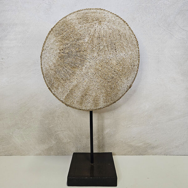 Een prachtige woondecoratie, handgemaakt van kralen, waarmee jij je woon- of slaapkamer helemaal in stijl brengt. De ondergrond van het bord is massief hout, wat een mooie natuurlijke uitstraling geeft. De standaard is inbegrepen en is gemaakt van metaal met een massief houten voet. Leuk om te combineren met meerdere borden bij elkaar.
