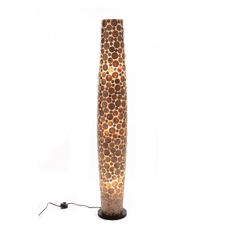 • Een sfeervolle ovale lamp, verkrijgbaar in 2 maten. De lamp is handgemaakt van gouden rondjes, die zorgen voor een warme en natuurlijke uitstraling. Dit is geen vloerlamp om bij te lezen, maar echt om sfeer te creëren in de kamer.