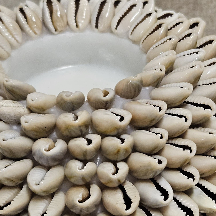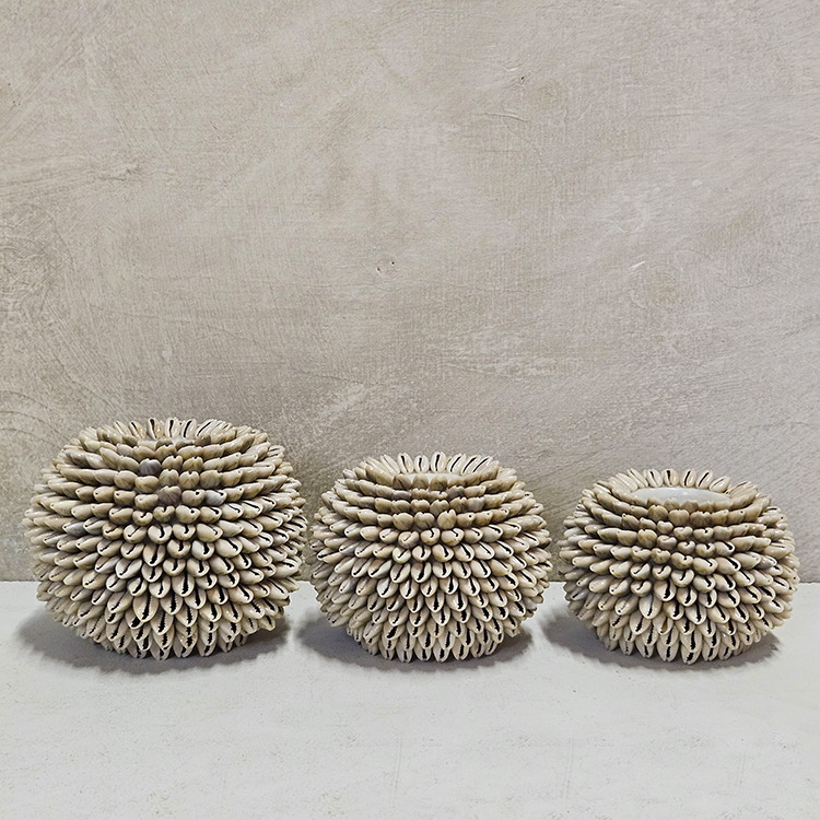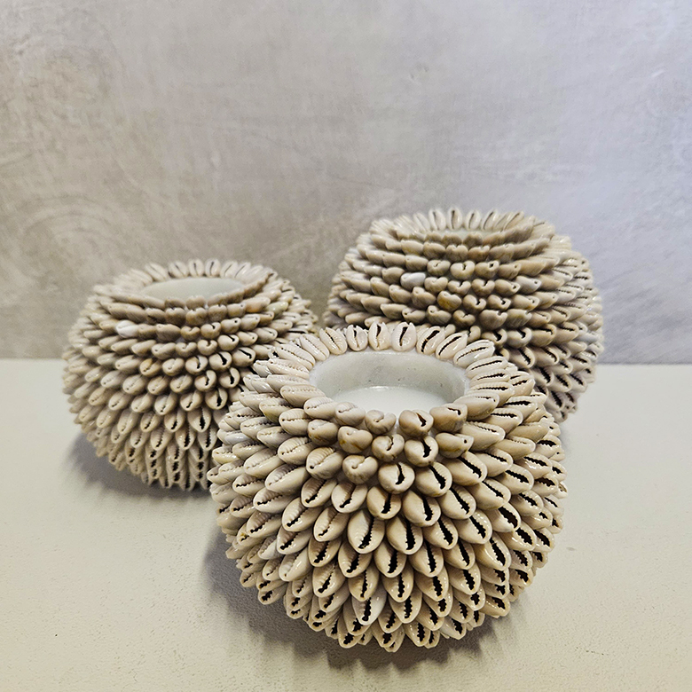 Waxinelicht met Kauri schelp. beige. Set van 3